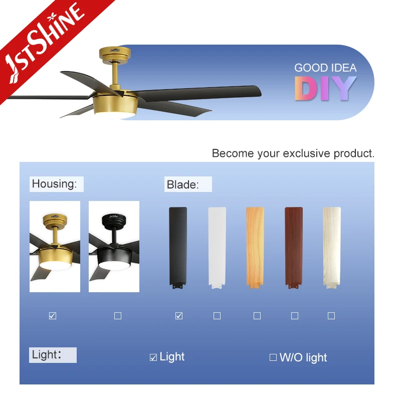 1stshine LED Ceiling Fan Factory Hot Sale 5 ABS Blades 6 Speeds Remote Control Ceiling Fan With LED Light