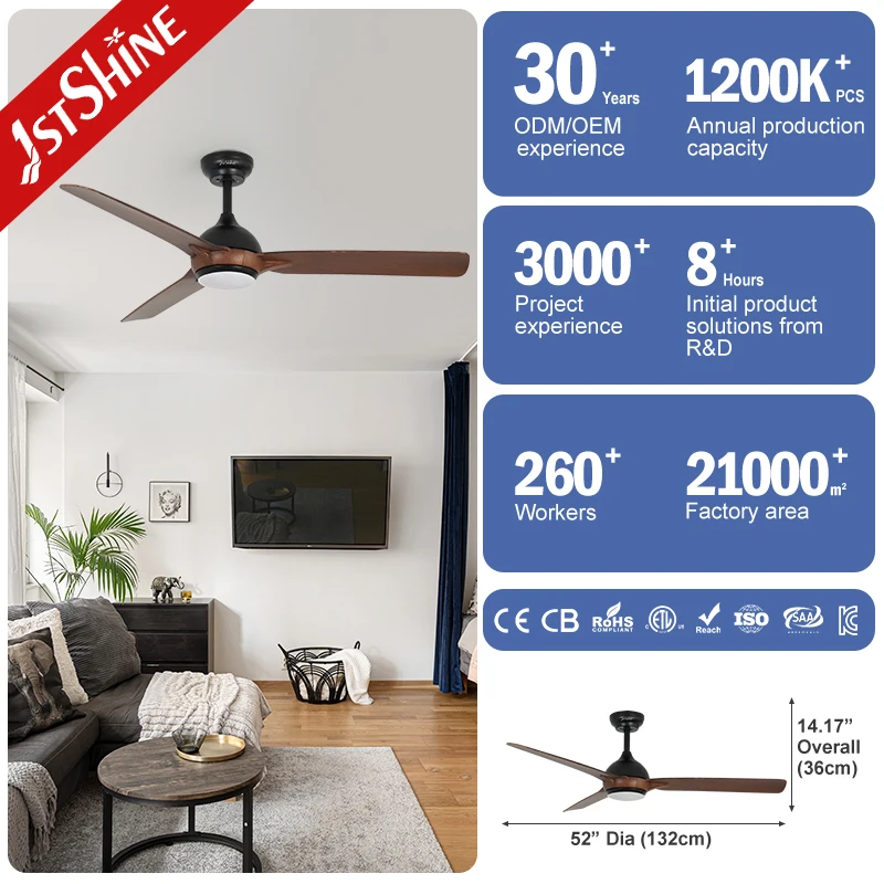 1stshine LED Ceiling Fan Adjustable Speed Modern Design Plastic Blades 52 Inches Ceiling Fan with Light
