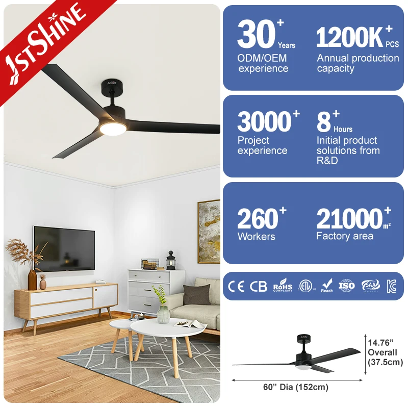 1stshine LED Ceiling Fan 60 Inches Modern Design Big Smart LED Ceiling Fan with Remote Control