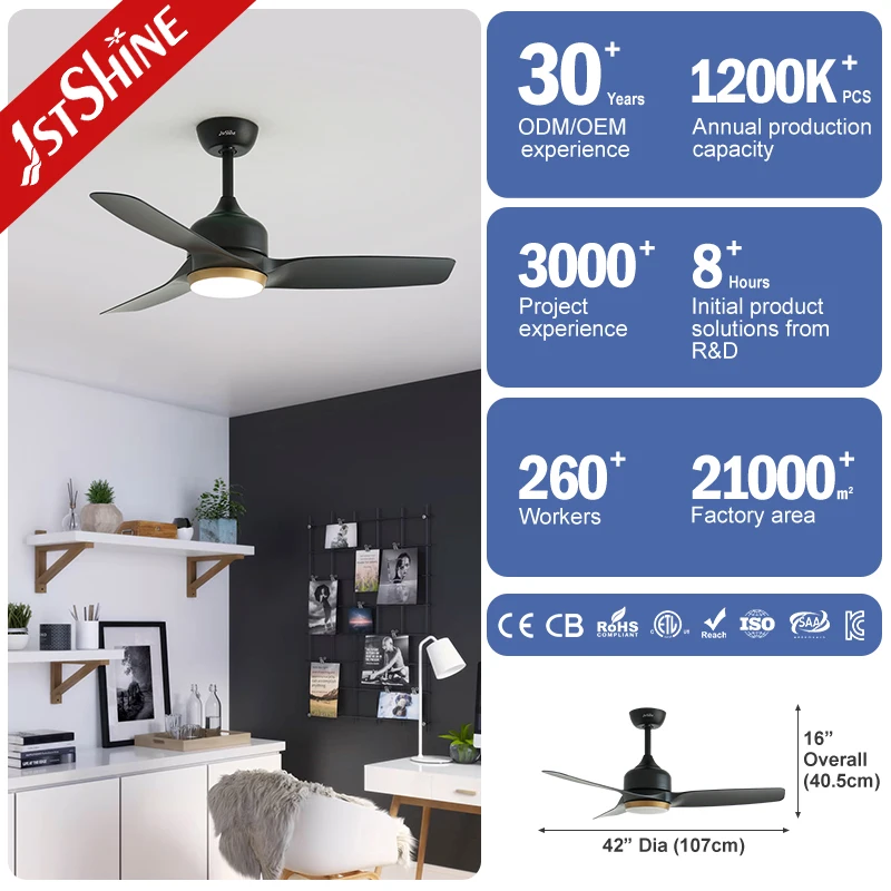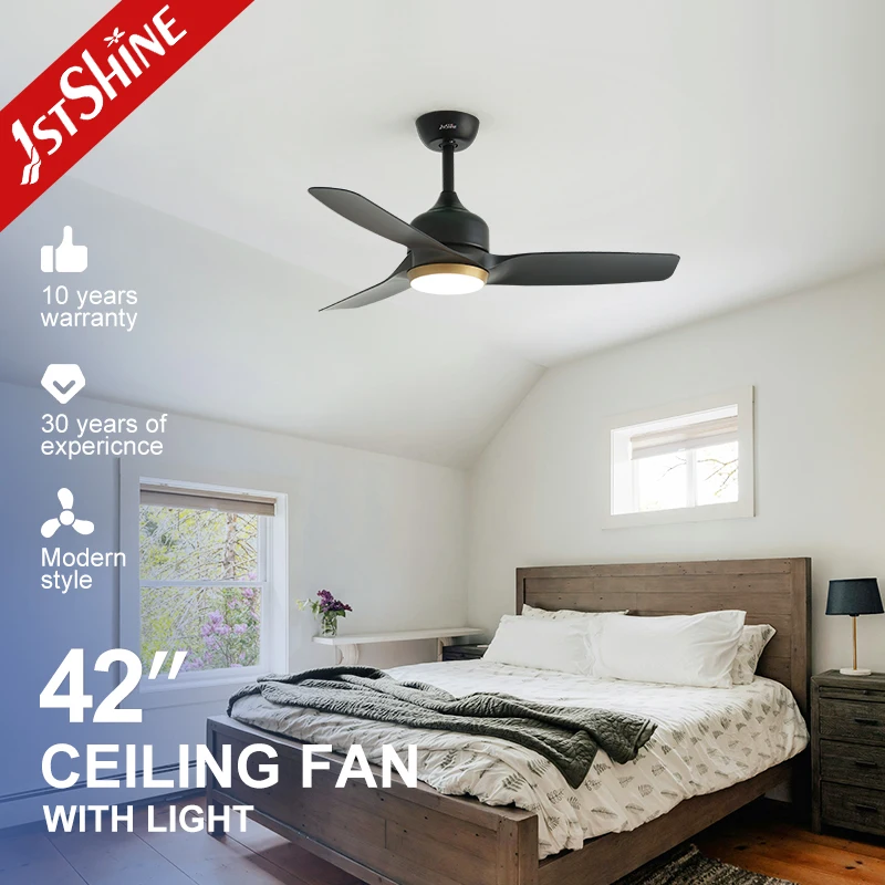1stshine LED Ceiling Fan Black Plastic Blades DC Motor Dimmable 42 Inches Ceiling Fan With Remote