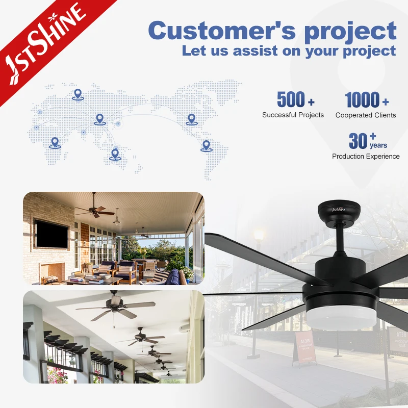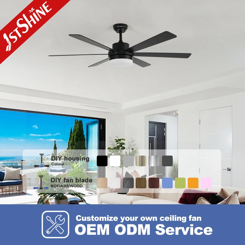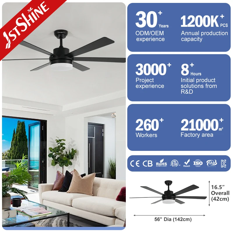 1stshine LED Ceiling Fan Factory 56" Black 6 MDF Blades Smart Ceiling Fan With Remote Control and Light