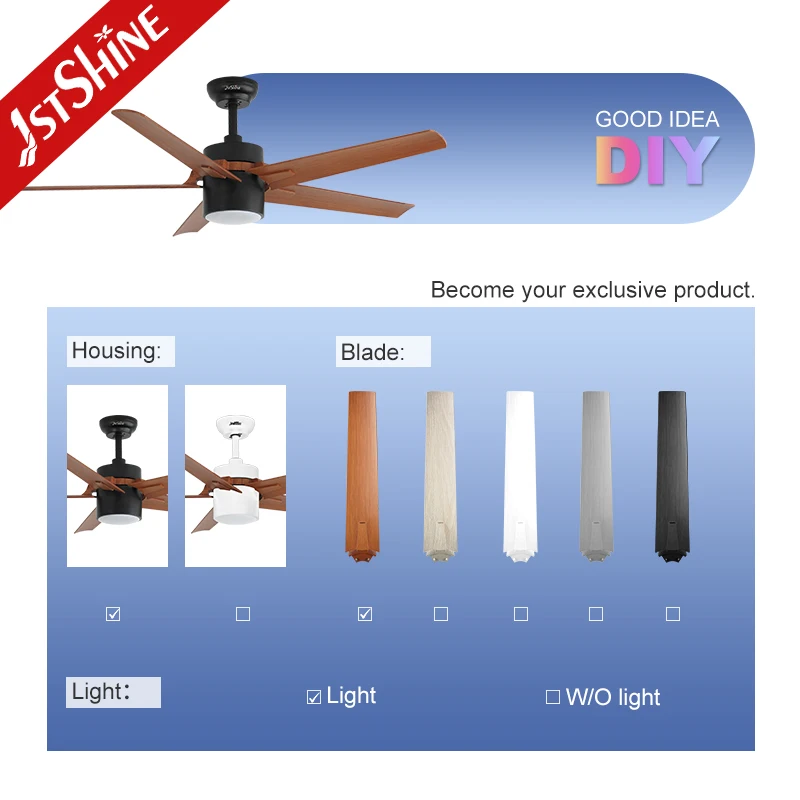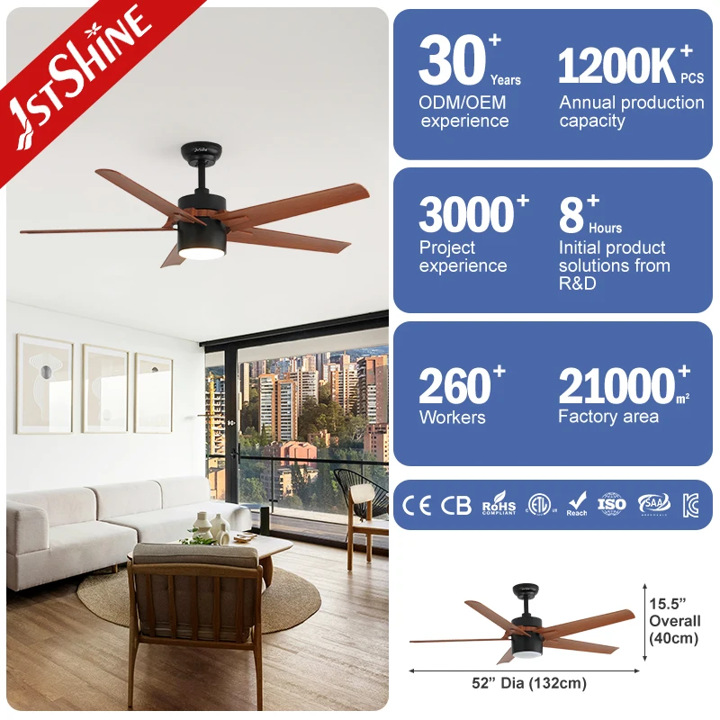 1stshine LED Ceiling Fan Orient Home 5 Plastic Blades OEM Downrod Decorative ABS Ceiling Fan With Light