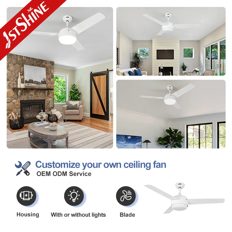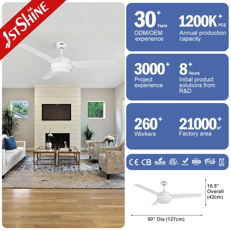 1stshine LED Ceiling Fan Remote Control MDF Blades Energy Saving 50 Inches White Ceiling Fan Led Lights
