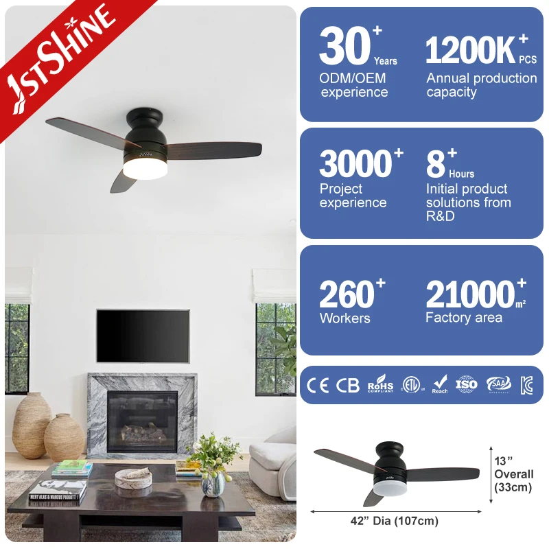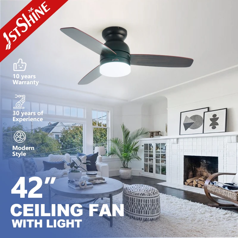1stshine LED Ceiling Fan OEM Color Reversible Blades Flush Mount 42 Inches Ceiling Fan with Light