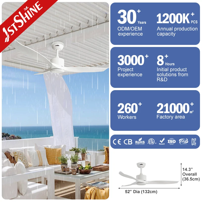 1stshine Ceiling Fan White Waterproof Plastic Blades No Light DC Motor Outdoor Ceiling Fan with Remote
