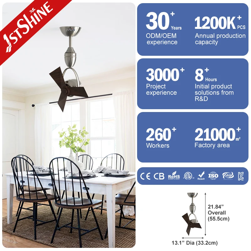 1stshine Ceiling Fan 13" Small Size DC Copper Motor Smart Adjustable Direction High Volume Ceiling Fan