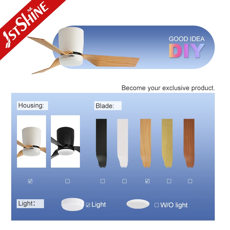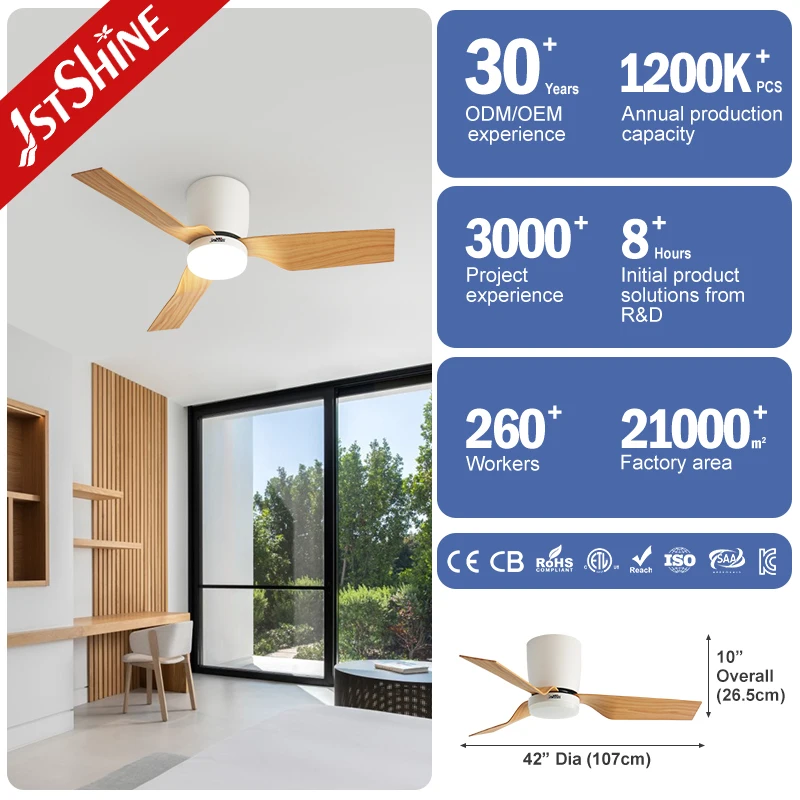 1stshine Ceiling Fan Factory 42 Inches Low Profile Flush Mounted Ceiling Fan with Remote and LED Light