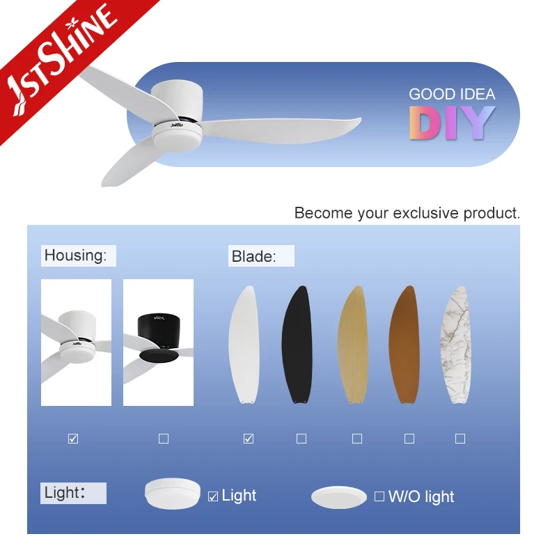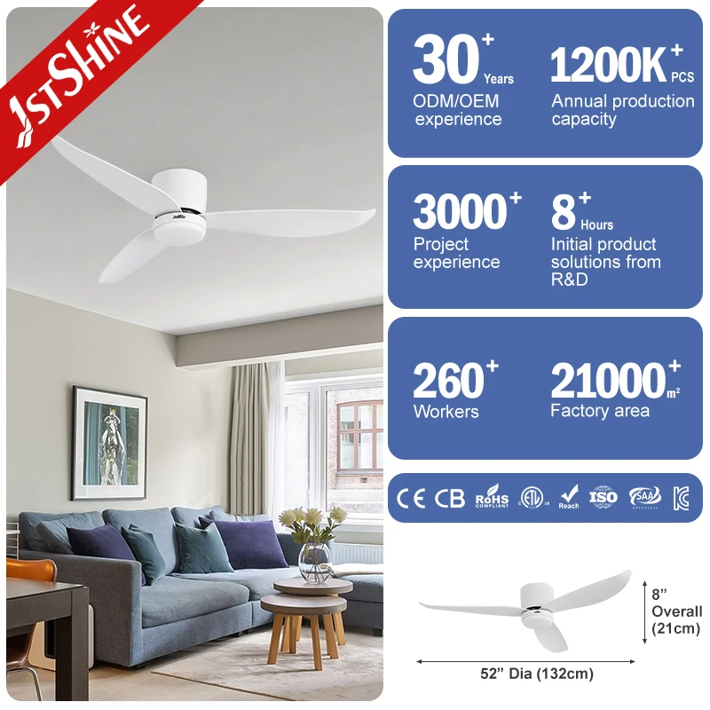 1stshine LED Ceiling Fan White Plastic Blades 52" Dimmable LED Lighting Ceiling Fan with Smart Remote Control