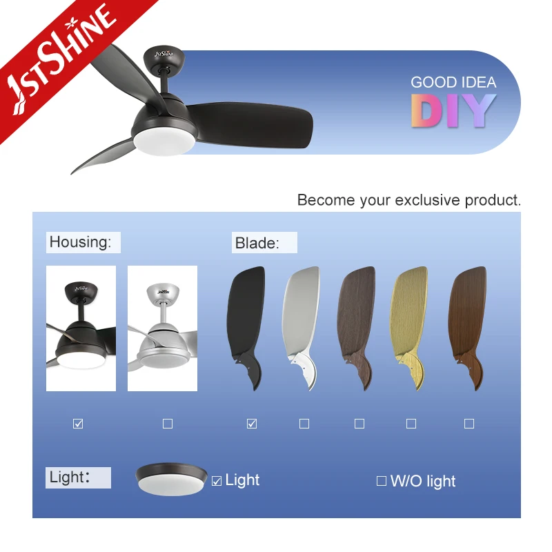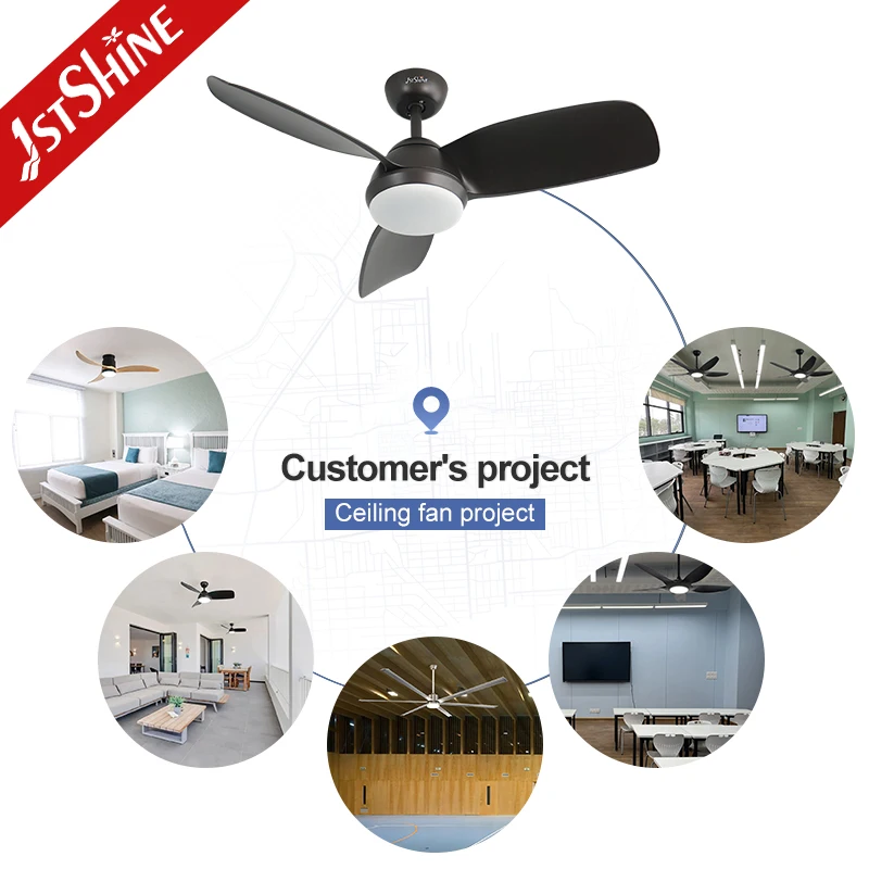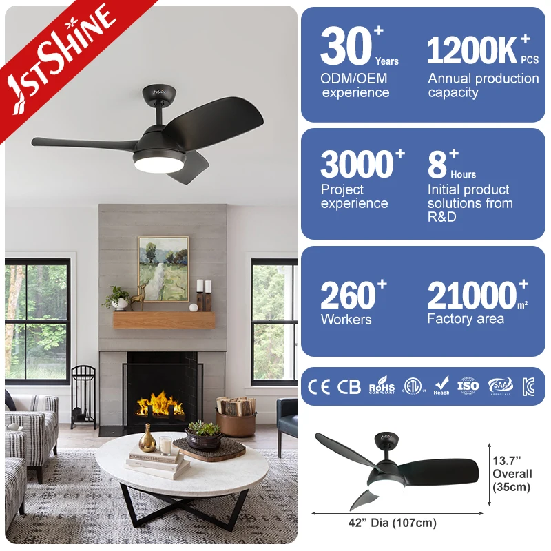 1stshine LED Ceiling Fan Indoor DC Motor 42" Plastic Blades Black Ceiling Fan with Light and Remote