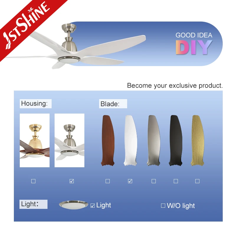 1stshine LED Ceiling Fan White ABS Blades 3 Color Lighting 60 Inches Big Indoor Ceiling Fan Light