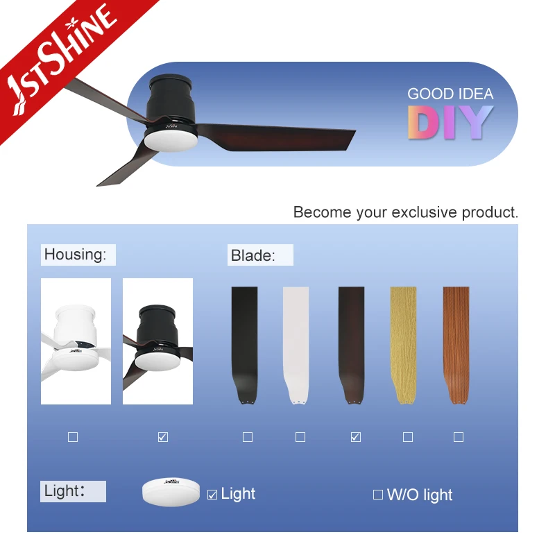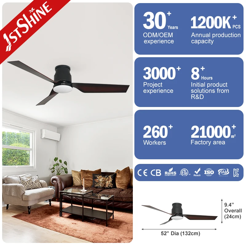 1stshine LED Ceiling Fan Factory Flush Mounted ABS Blades Led Lighting Ceiling Fan with Remote