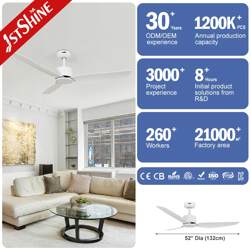 1stshine Ceiling Fan White OEM 3 ABS Blades High Airflow Smart Remote Control DC Motor Ceiling Fan