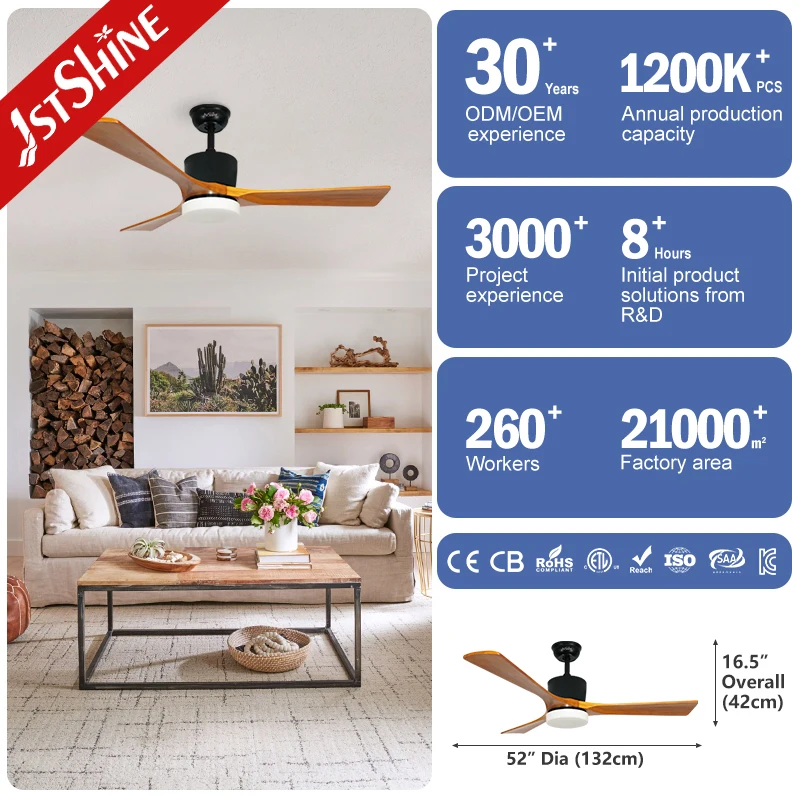 1stshine Ceiling Fan Black Metal High Quality Low Noise 6 Speeds LED Voice Control Smart Ceiling Fan with Remote