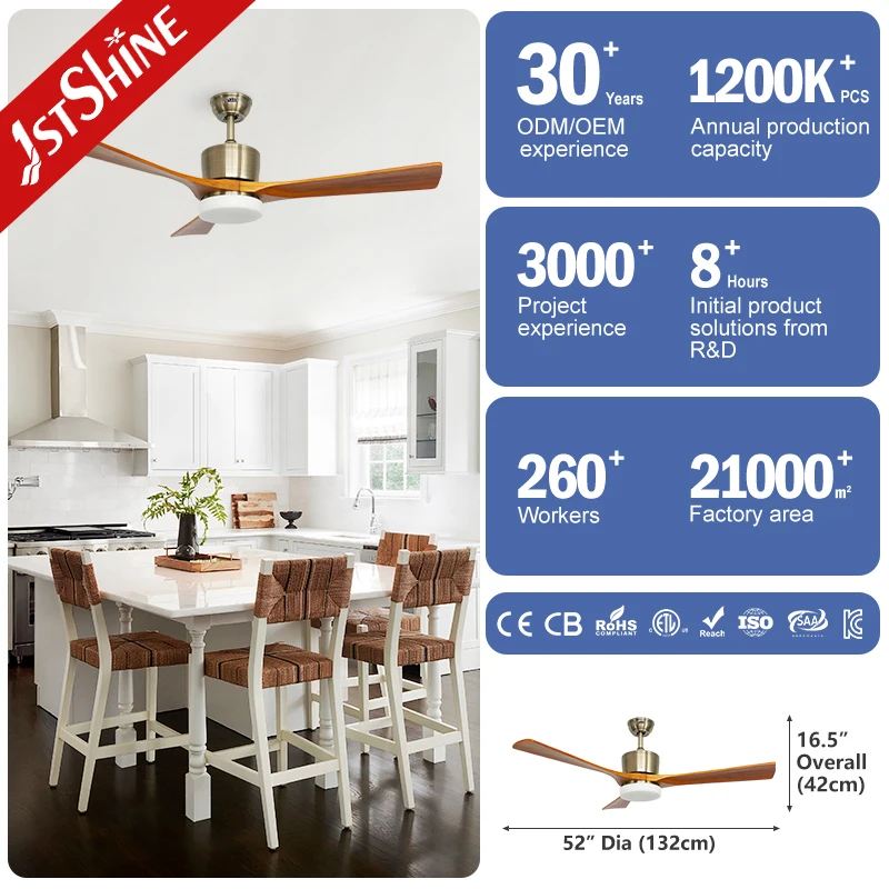 1stshine Ceiling Fan 3 Wood Blades LED Energy Saving Low Watt Ceiling Fan Lamp