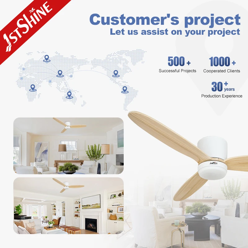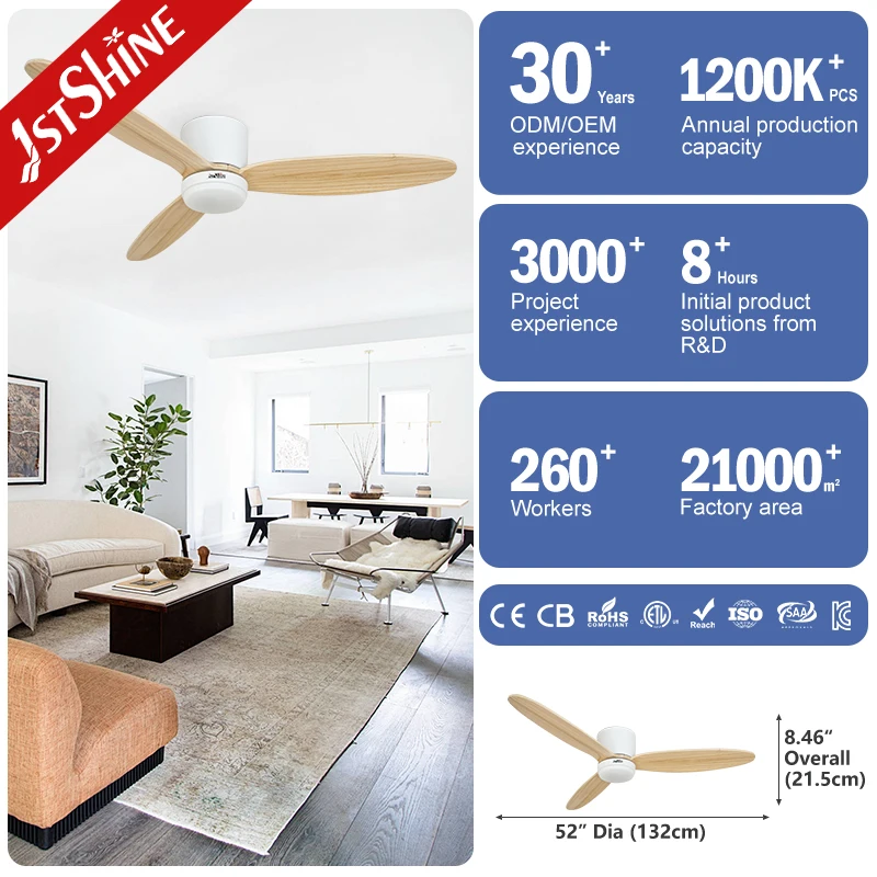 1stshine Ceiling Fan Home 52 Inches Solid Wooden Blades LED Lighting Ceiling Fan with Remote