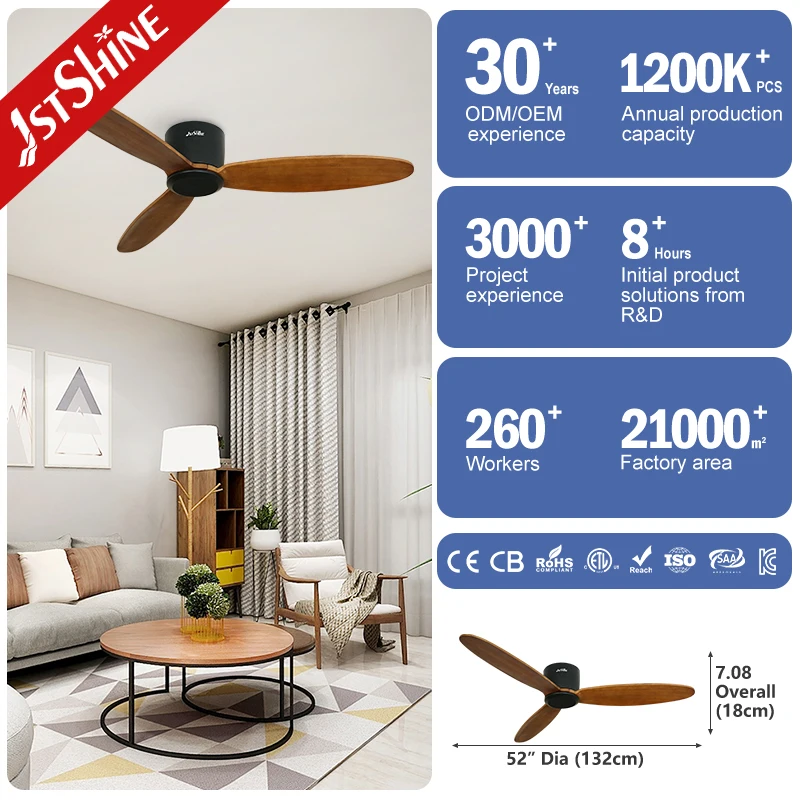 1stshine Ceiling Fan Popular Flush Reversible Remote Control Low Ceiling Fan No Light
