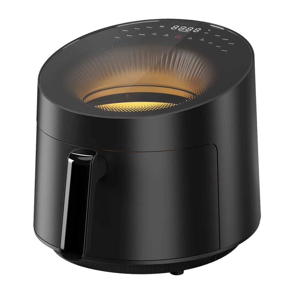 5 Liter Smart Digital Hot Air Fryer 10 Preset Programs View Window for Household Hotel Glass Ceiling and Red Interior Lighting