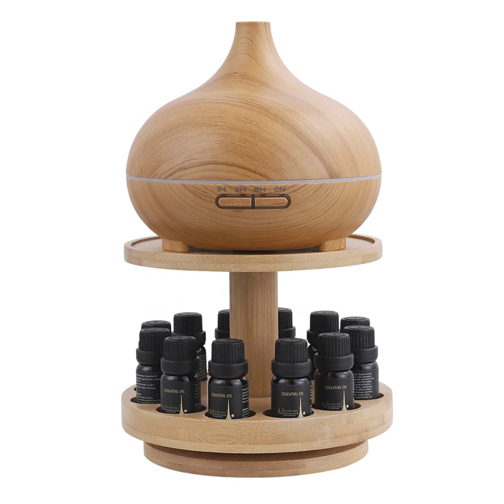 China Best Selling Bamboo Wooden Aromatherapy Therapeutic Rotating Rack Natural Pure Scent Aroma Diffuser Set Essential Oil