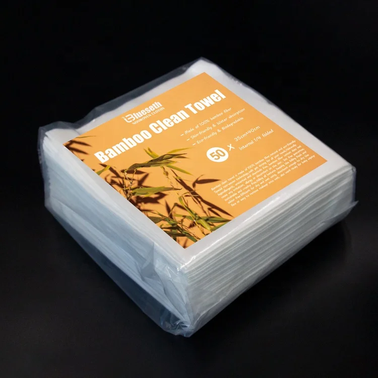 BCS Wholesale Custom Disposable Biodegradable Bamboo Face Paper Towels Nonwoven Square Adult Use Beauty Salons