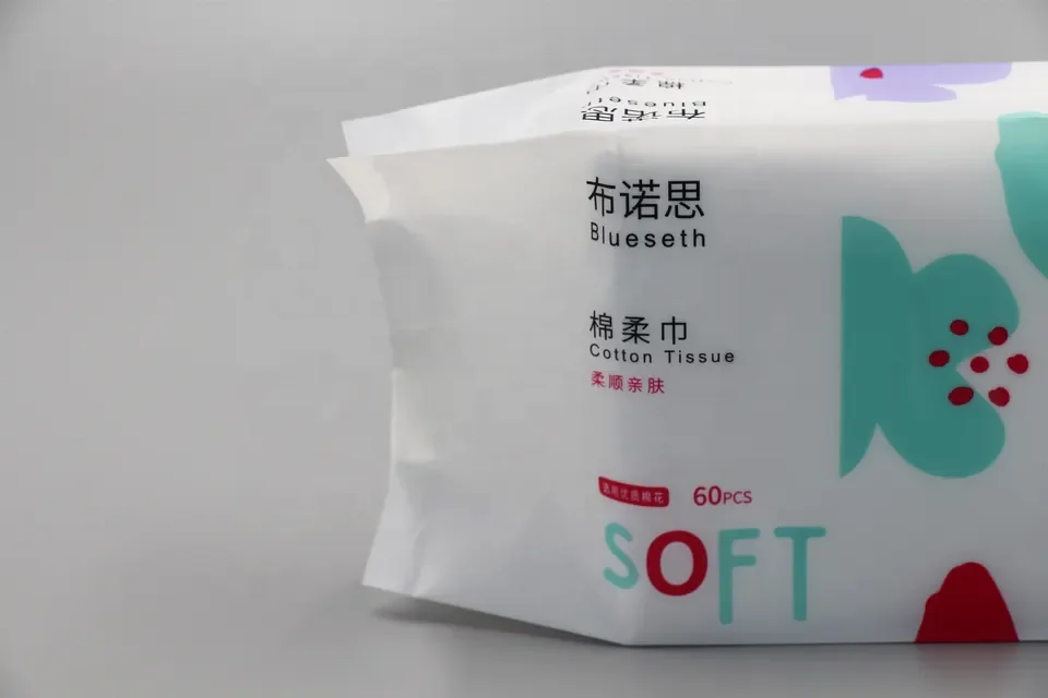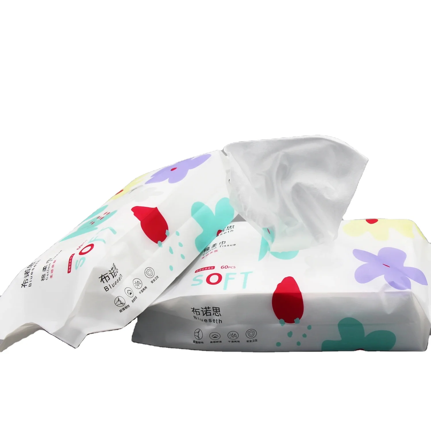 BCS 100% Cotton Disposable Face Tissues Soft Nonwoven Wipes with Pearl Fabric Square Pattern for Baby Child Facial Cleansing