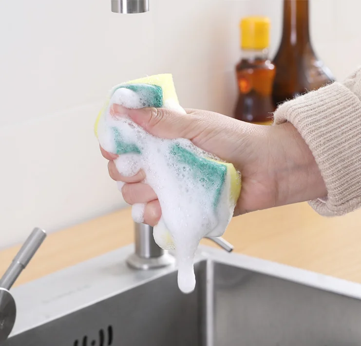 Wholesale PU Material Dishwashing Sponge Scouring Pads Yellow Green Kitchen Dish Washing Pads Sponge