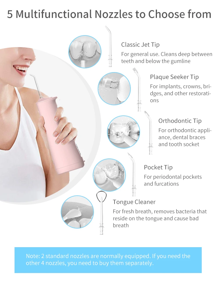 Rechargeable Portable Cordless Water Flosser Oral Care Irrigator for Travel Home Nose Cleaner Lithium Battery Car Wash Nozal