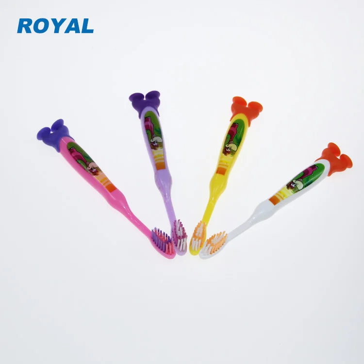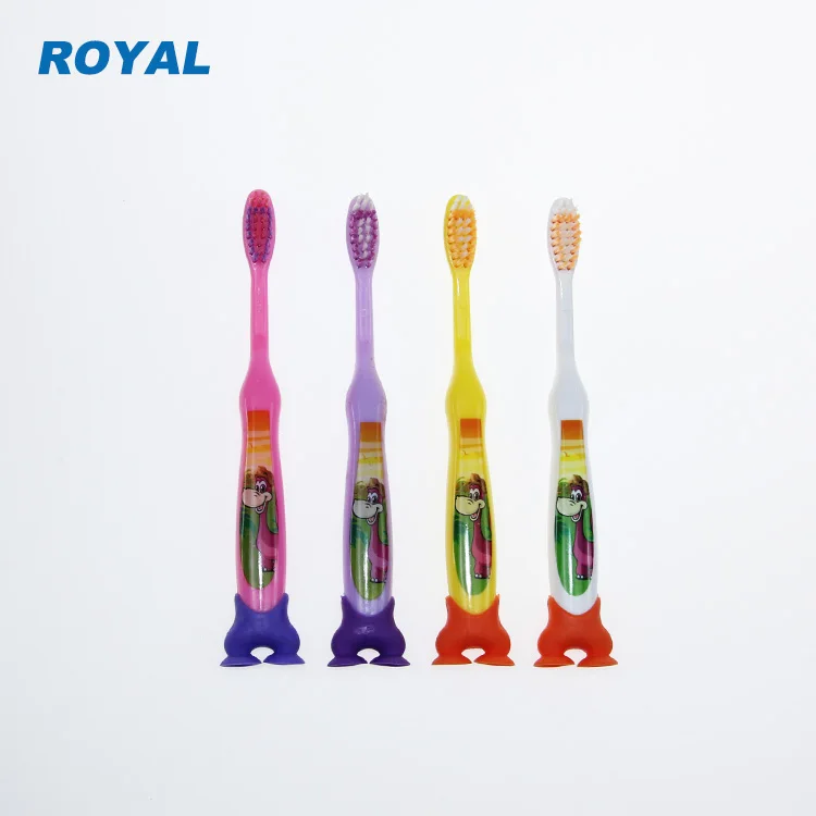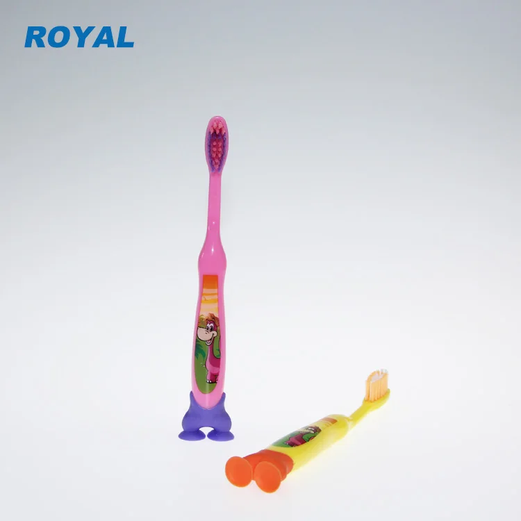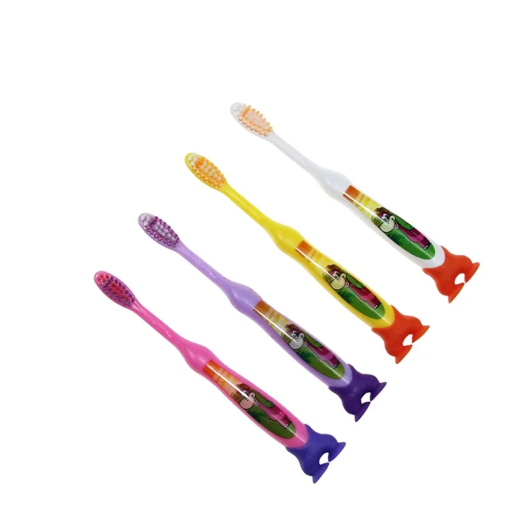 Hot Selling Home Use Kids Suction Cup Toothbrush Cartoon Lovable Cute Toy Tooth Brush Oem Label Box Packing