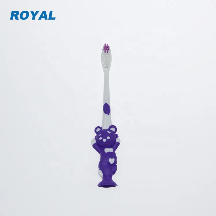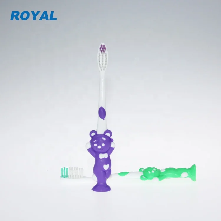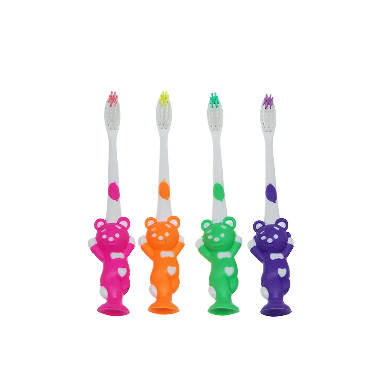 Good Quality Home Use Brush for Teeth Cute Design Toddler Rubber Handle Toothbrush with Suction Cup