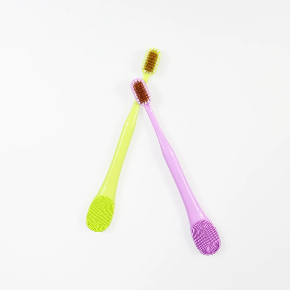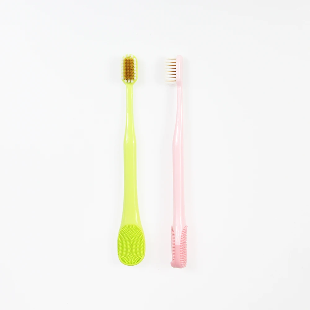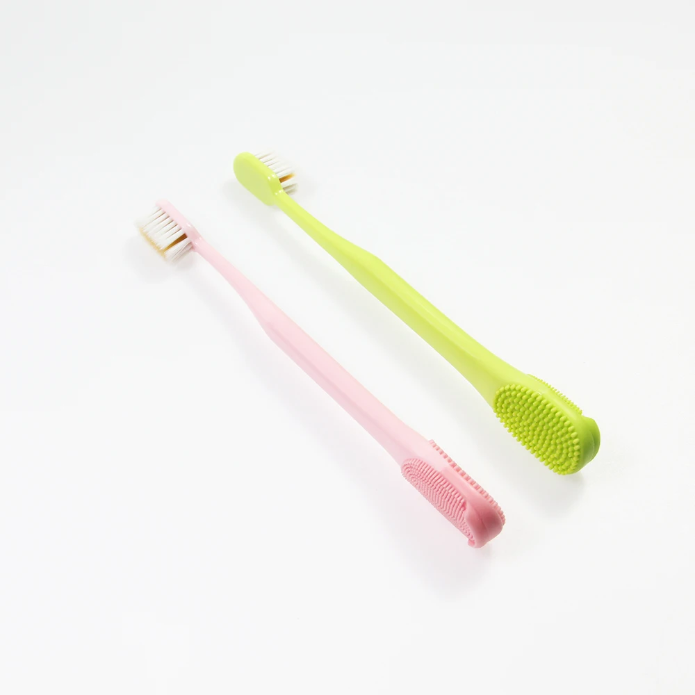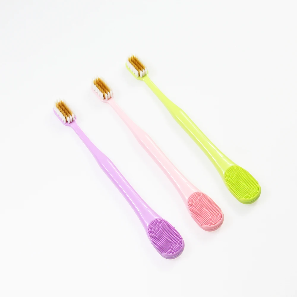 India Hot Selling Wholesale New Soft Tapered Bristles Toothbrush with Tongue Cleaner Multi-functional Dentists