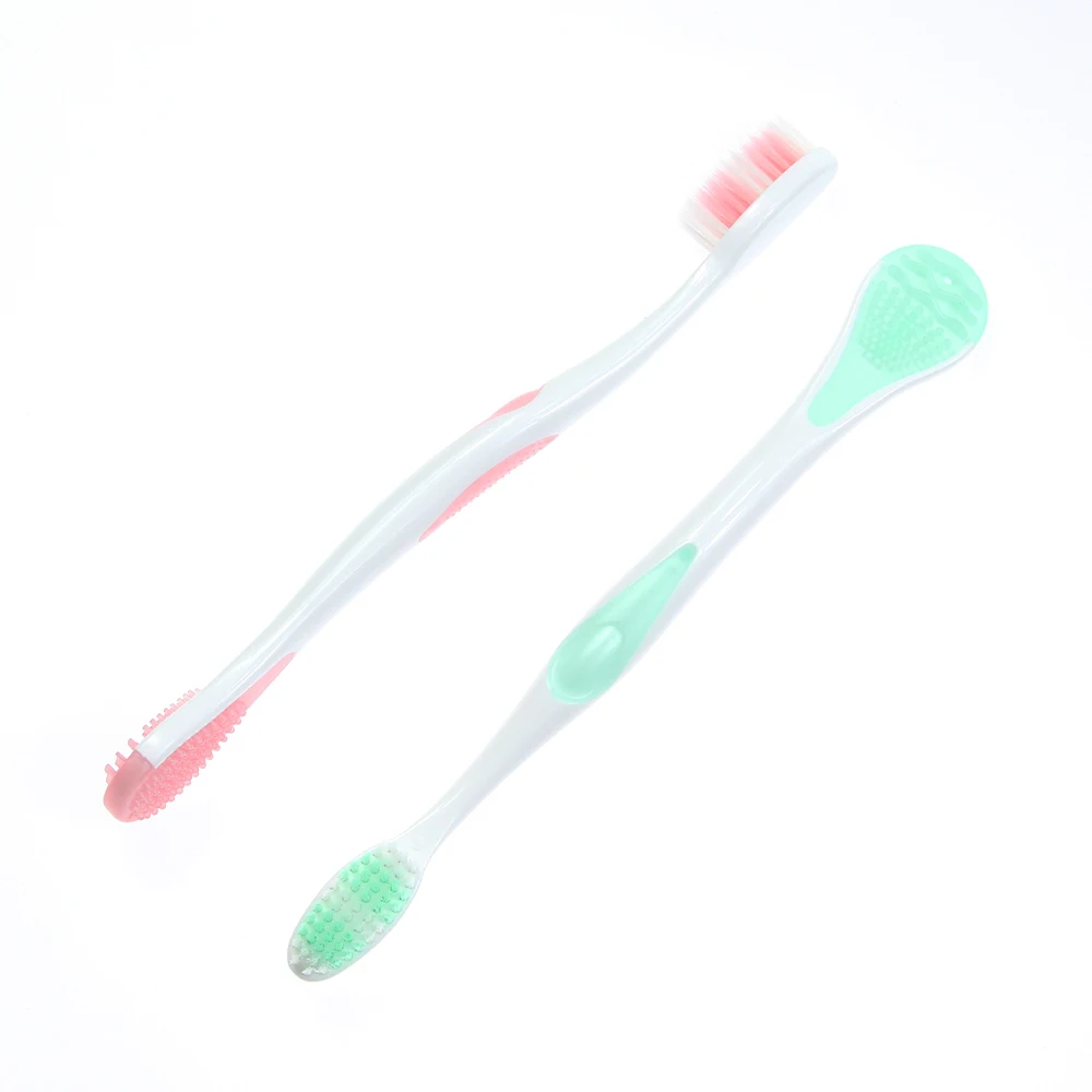 Hot Selling Adult Soft Pro Toothbrush with Tongue Cleaner More Brush Holes More Comprehensive Cleaning Plastic Tooth Brush