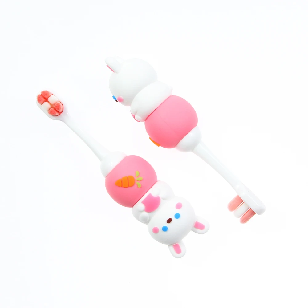 So Cute Baby pink Rabbit Shaped Toothbrush 3d Babe ultra Fine Bristles Small Size Easy Hold Tooth Brush Oral Hygiene
