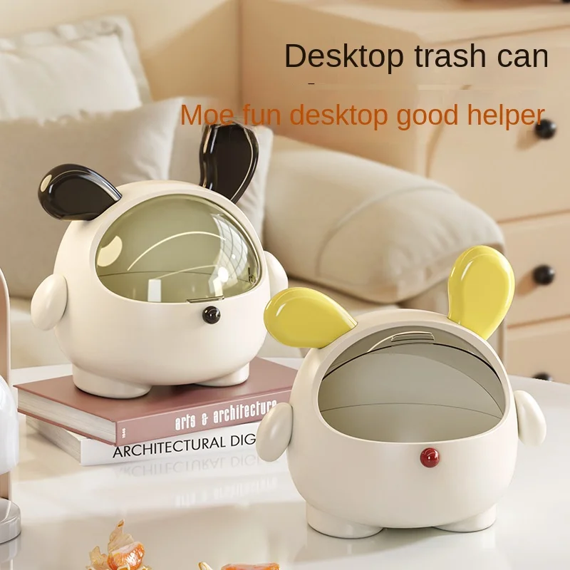 Large Capacity Cute Desktop Trash Can with Lid Multi-Function Storage Box for Household and Office High-Level Mini Plastic Bin