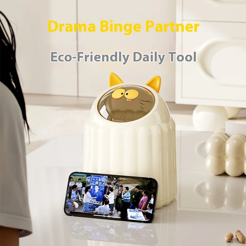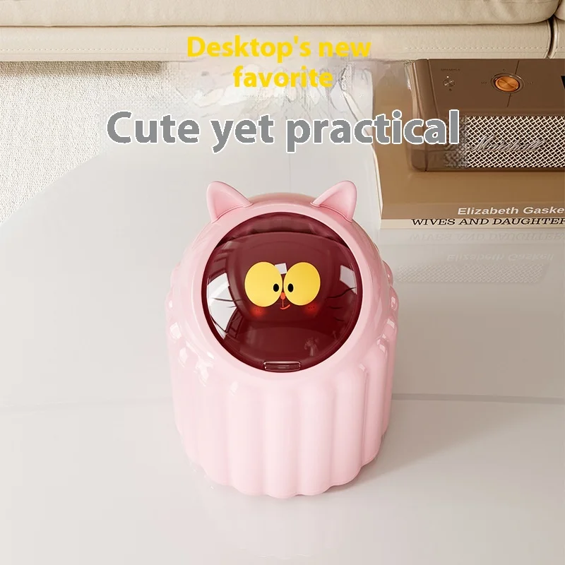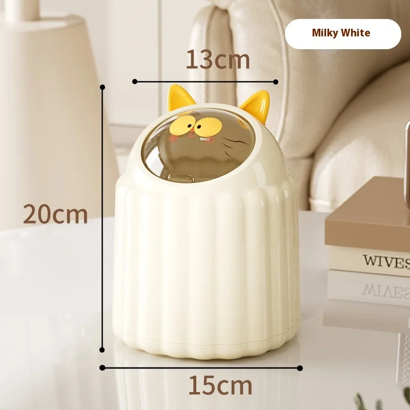 Cartoon Cat Ear Flip-Type Trash Bin Household Plastic Storage Bucket Lid for Living Room Dormitory Bedroom Table Injection