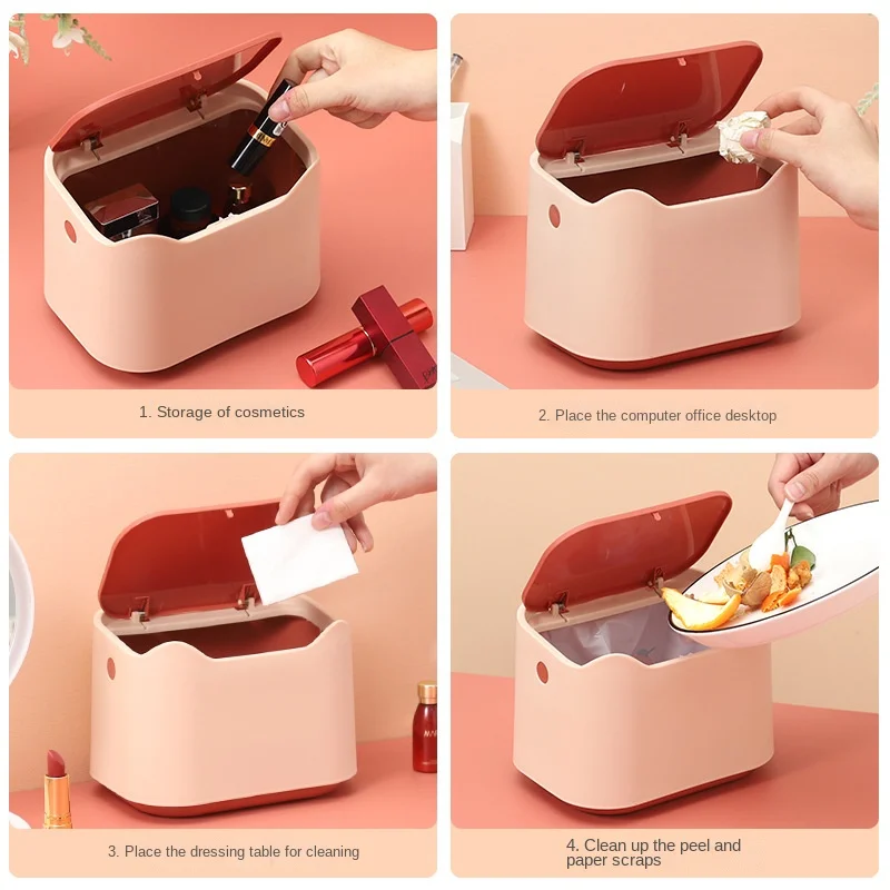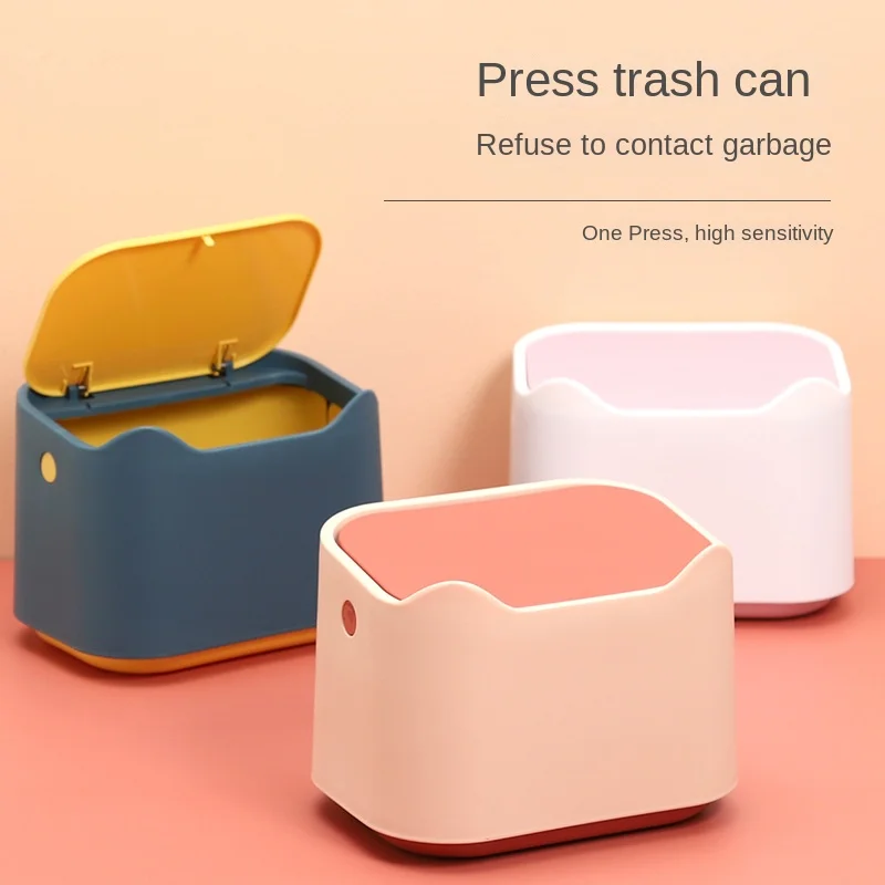 Cute Small Plastic Desktop Trash Can with Push-Type Lid for Household Garbage & Sundries Storage Can Be Converted Tissue Box