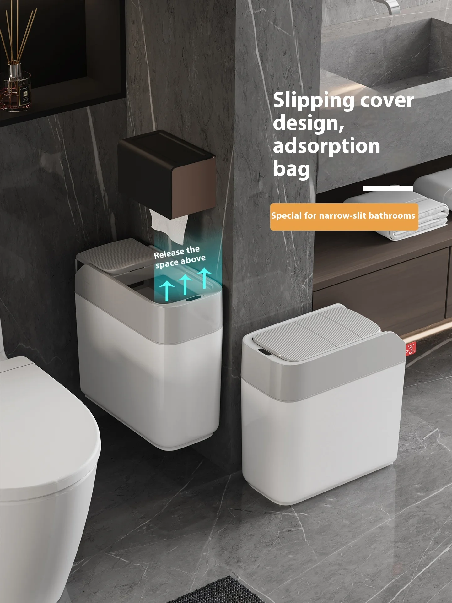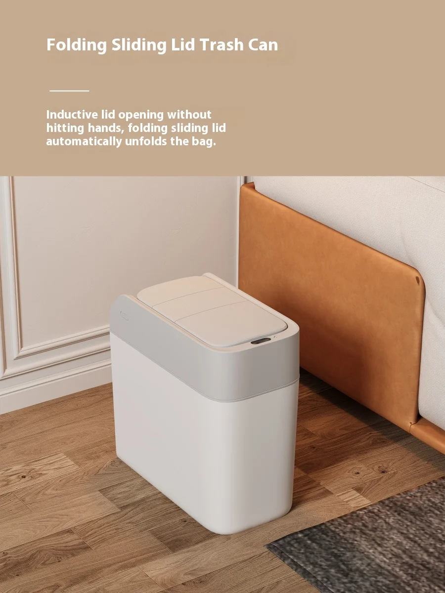 Intelligent Automatic Induction Sliding Cover Household Toilet & Living Room Narrow Slit Wall Hanging Trash Bin Adsorption Bag