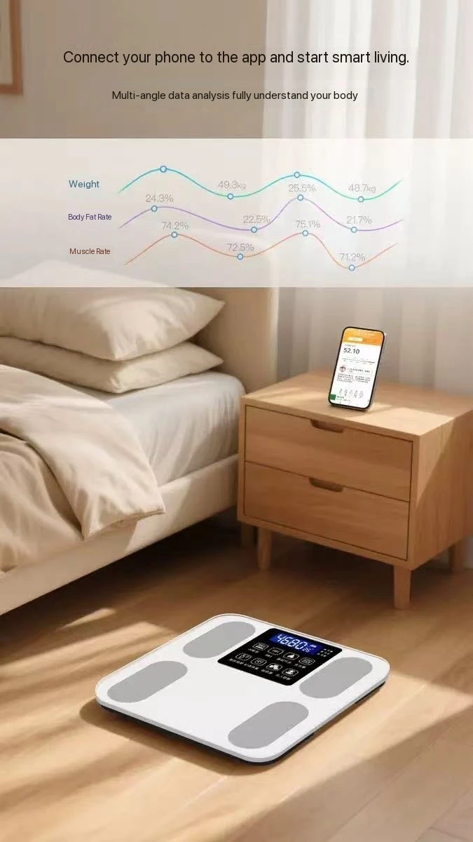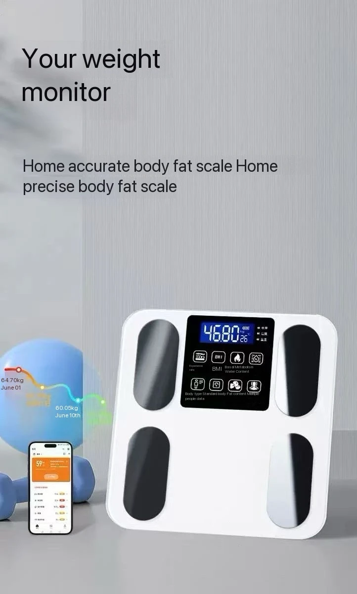 Small for Bluetooth Electronic Scale for Intelligent Weighing Body Fat Measurement Straight Hair Household Charging Scale