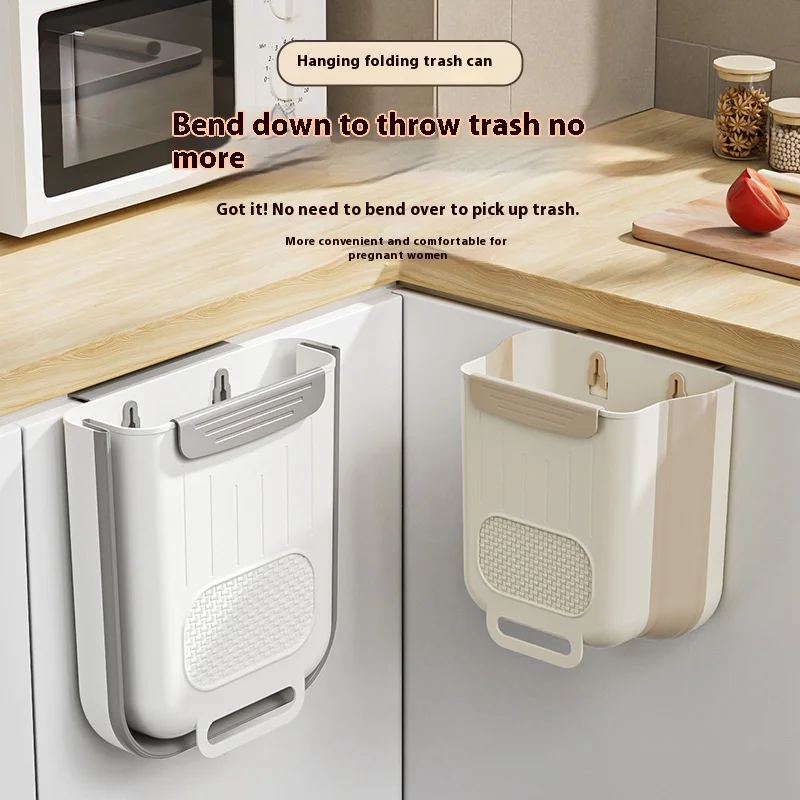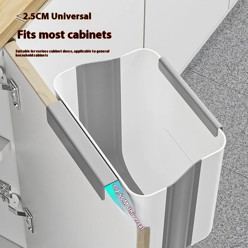 Large Diameter Capacity Foldable and Punch-Free Wall-Mounted Kitchen Trash Bin Multi-Function Household Plastic Bin