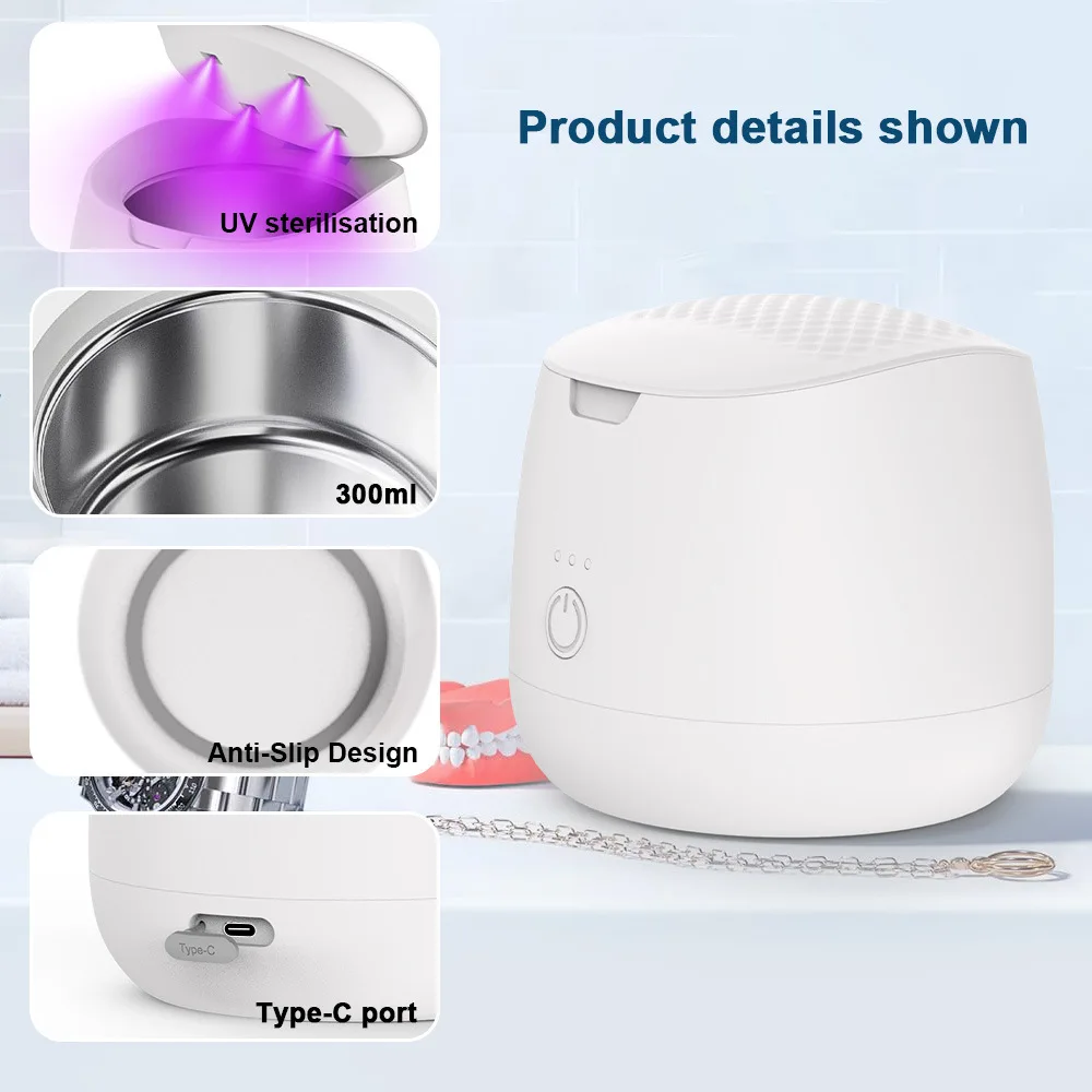 USB Power Ultrasonic Cleaning Machine for Dentures Jewelry Small Items Braces Ring Necklace Bracelet Household
