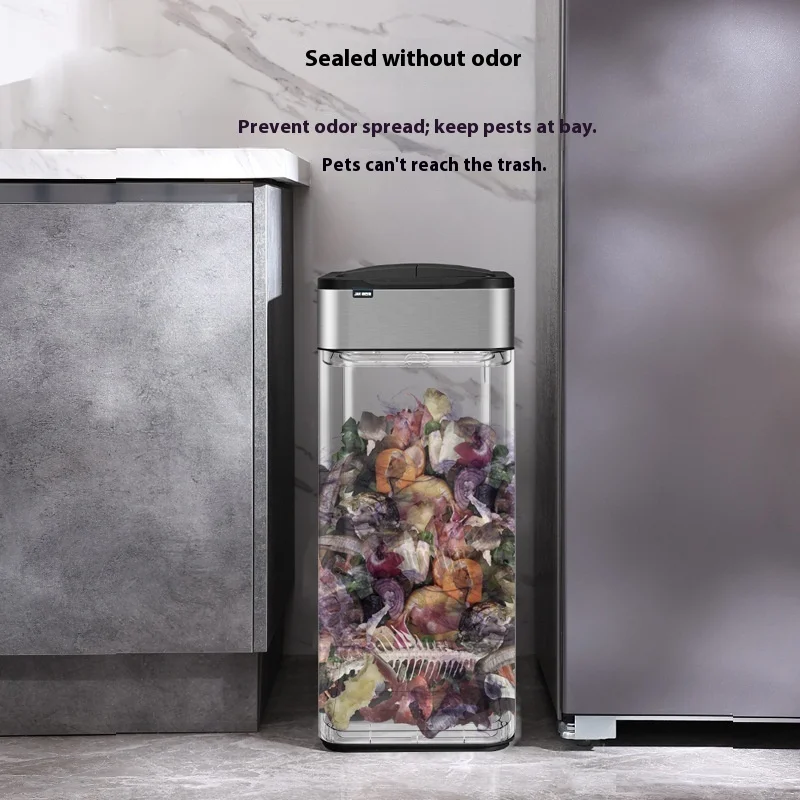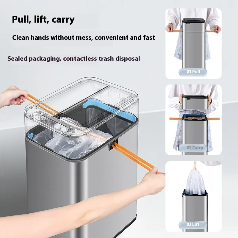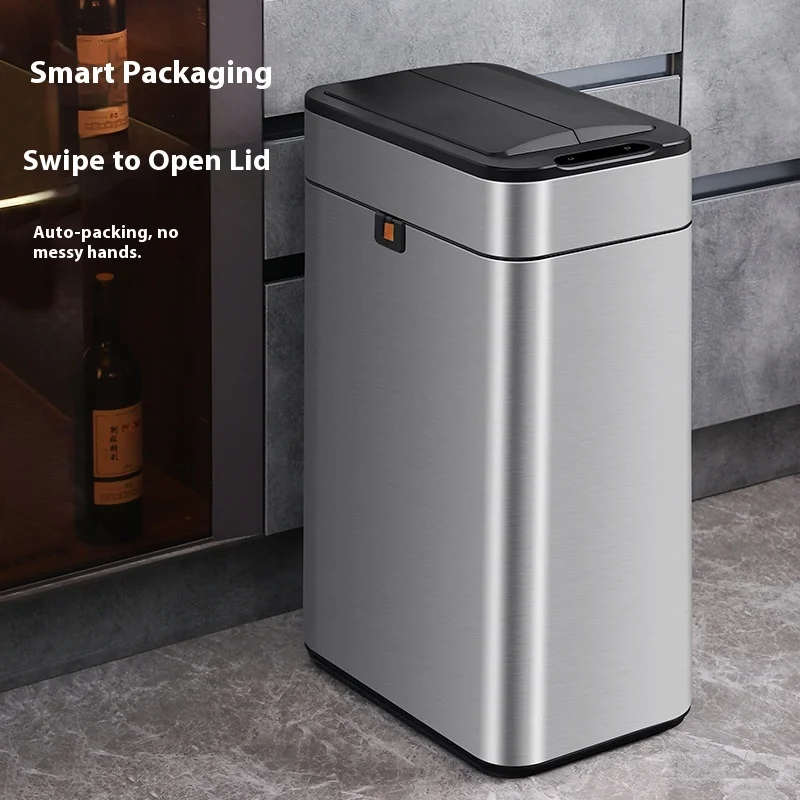 Large Automatic Packaging Smart Inductive Trash Can for Kitchen Living Room Office Toilet Square Plastic Household with Lid