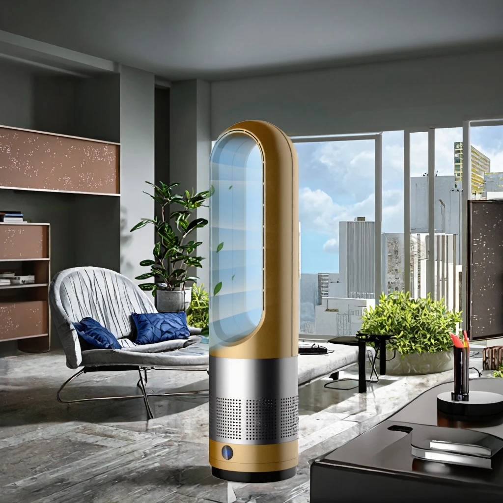 Intelligent Portable Electric Table Bladeless Fan Remote Control Air Cooling for Household Hotel Use English Operating Plastic