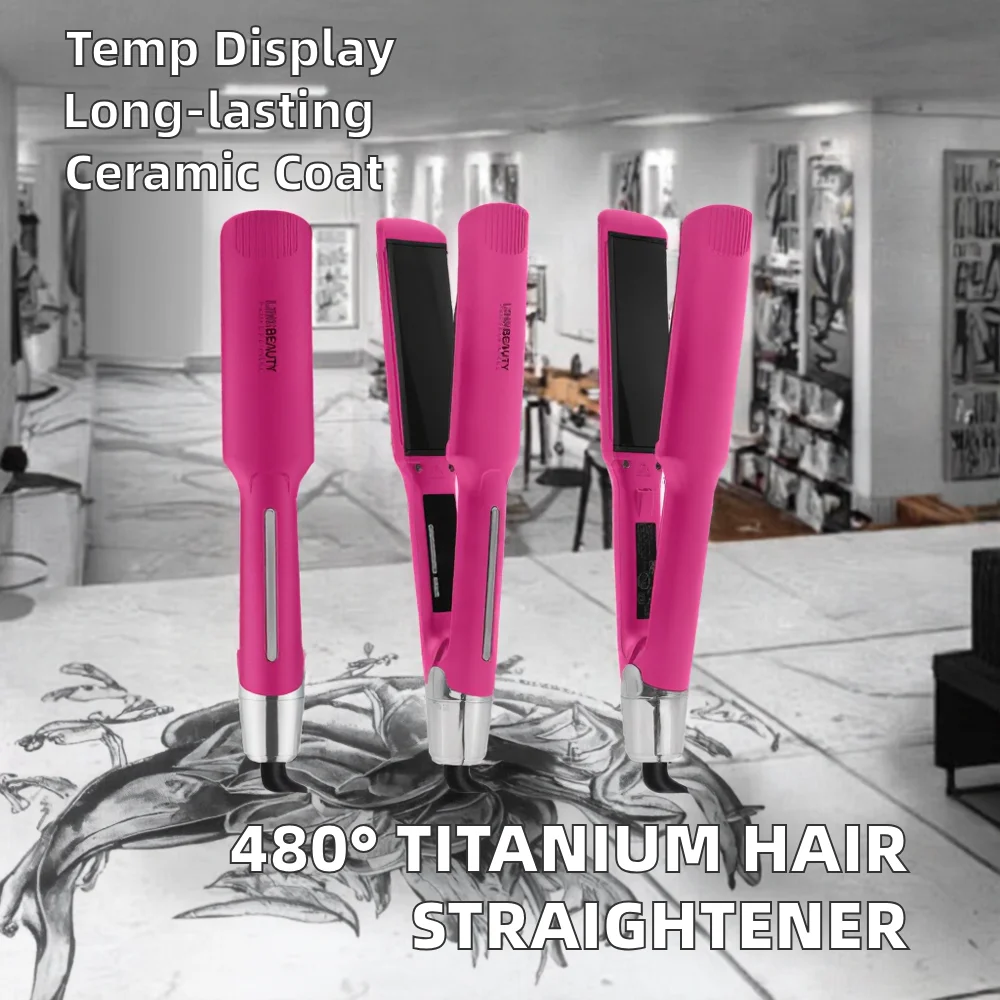 Salon Professional 480 Degree Titanium Hair Straightener LCD Electric Hair Lisseur De Cheveux Planchas Para Cabello Spanish RV