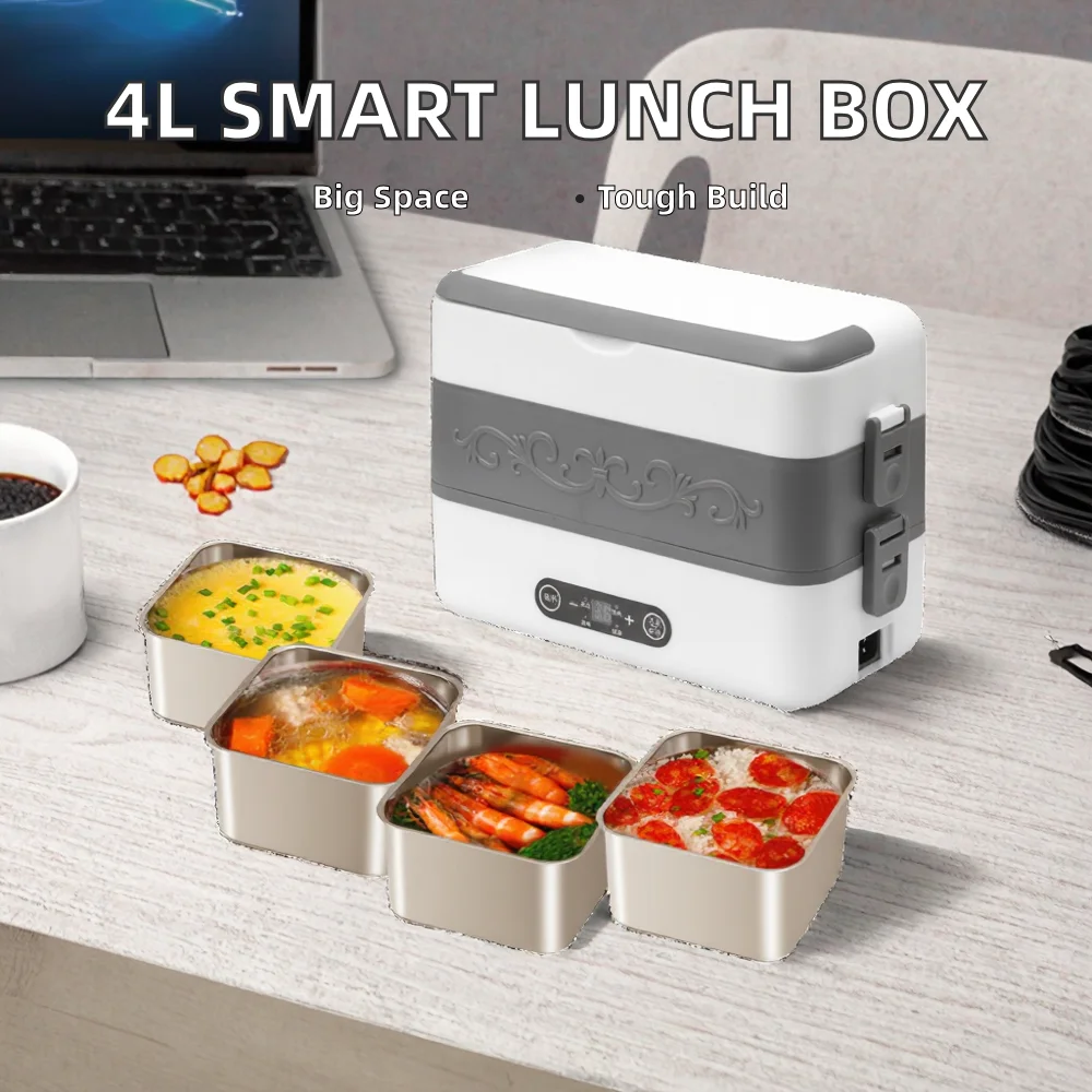 Large 4L Capacity Multi-Functional Portable Office Worker Food Heater Electric Lunch Box Intelligent Plug-In Household