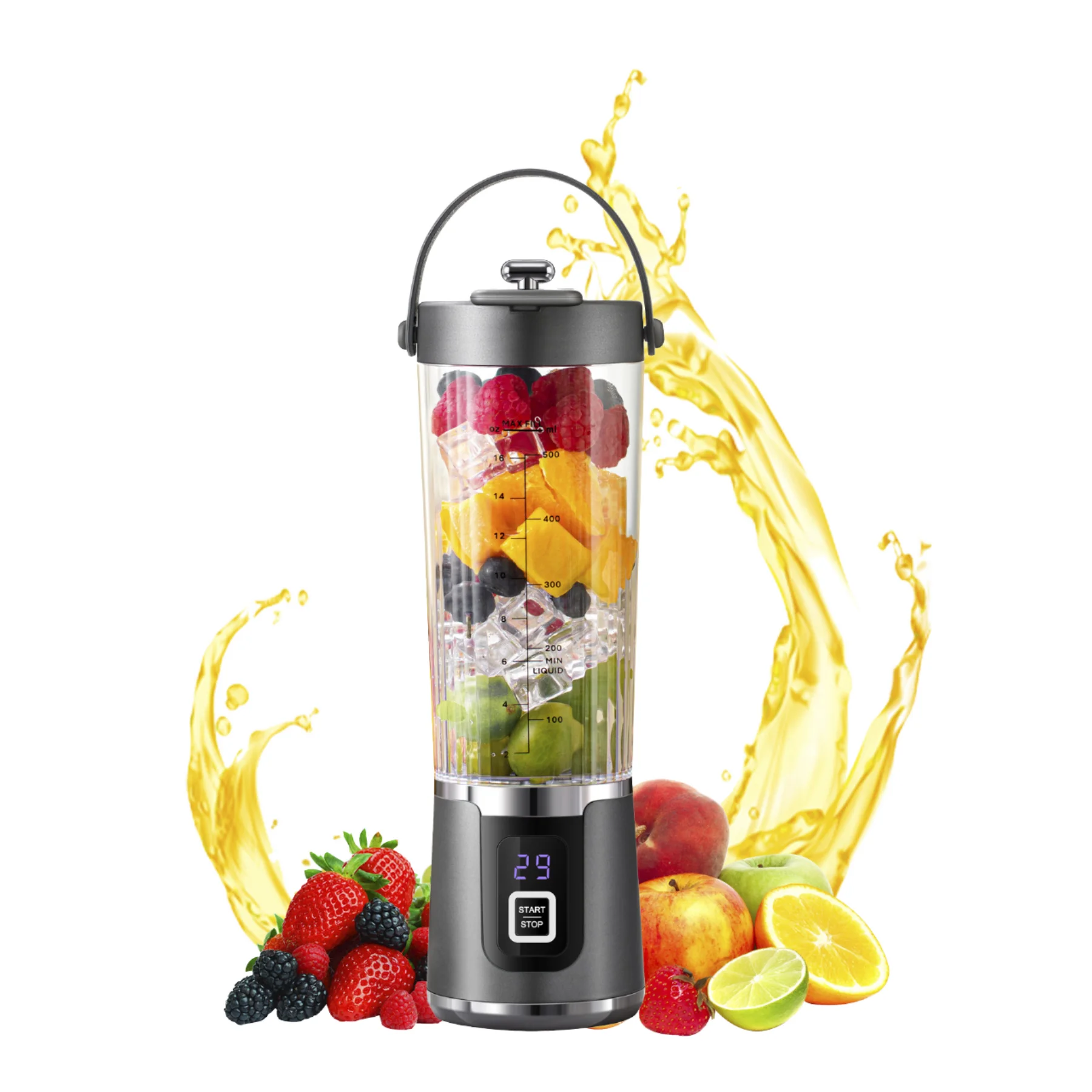 BPA Free 500ML Personal Size Cordless Rechargeable Portable Smoothie Maker 10 for Sharp Blades 3000mAh Crushing Ice USB for Car