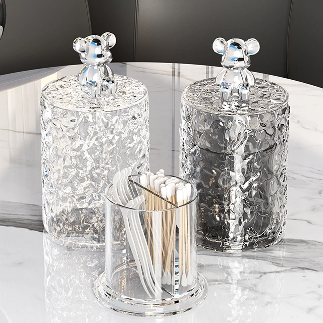 Modern Round Plastic Toothpick Box Holder with Bear Water Ripple Design for Household Injection Technics