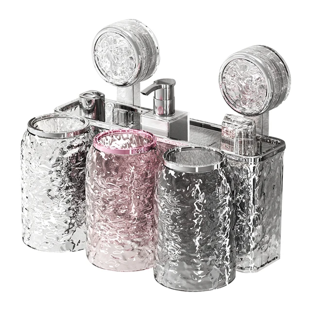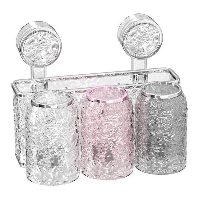 Modern Luxury Round Plastic Toothbrush Three-Cup Set for Home Bathroom Storage for Hotels Boxed