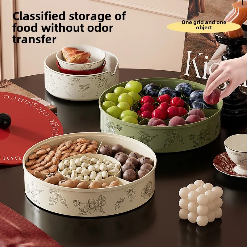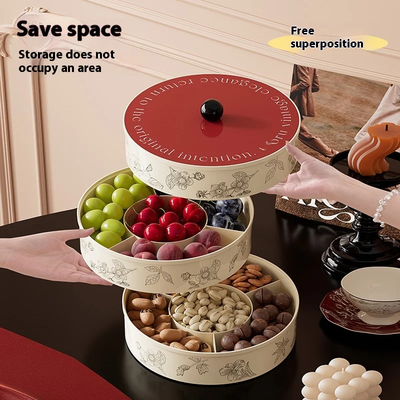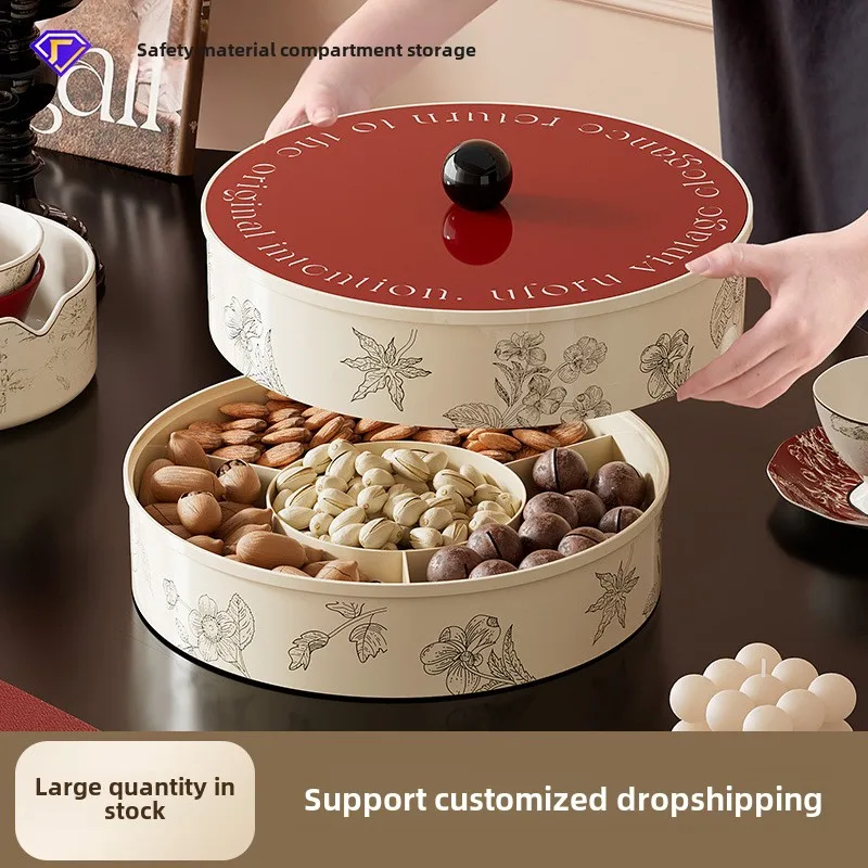 Vintage Style Household Fruit Plate Multi-Layer Compartment Candy Plate Snacks Coffee Table Deco Sunflower Seeds Dried Fruit