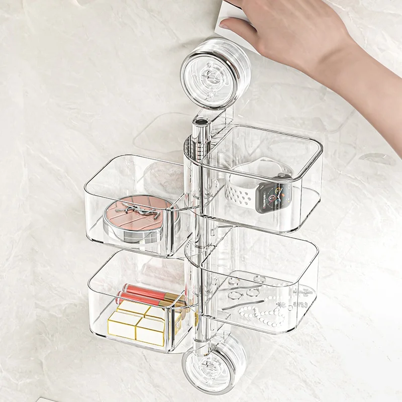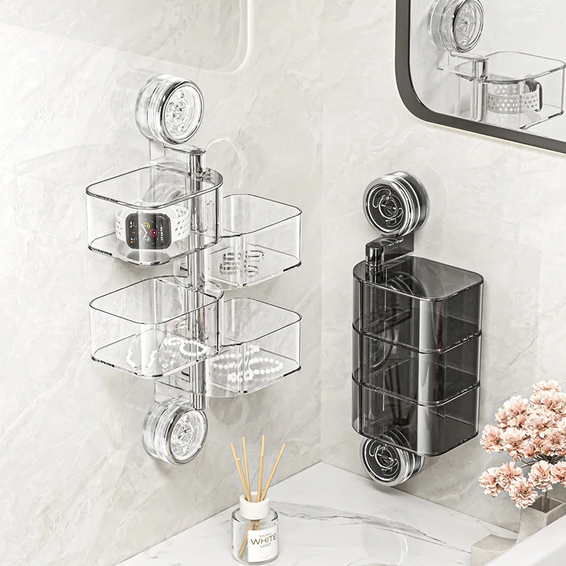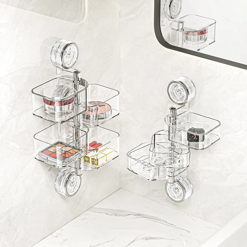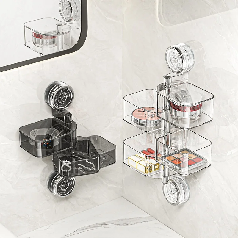 Luxury High-End Plastic Jewelry Storage Box Double-Tiered Suction Cup Organizer Earrings Studs Rings Necklaces Dressing Table