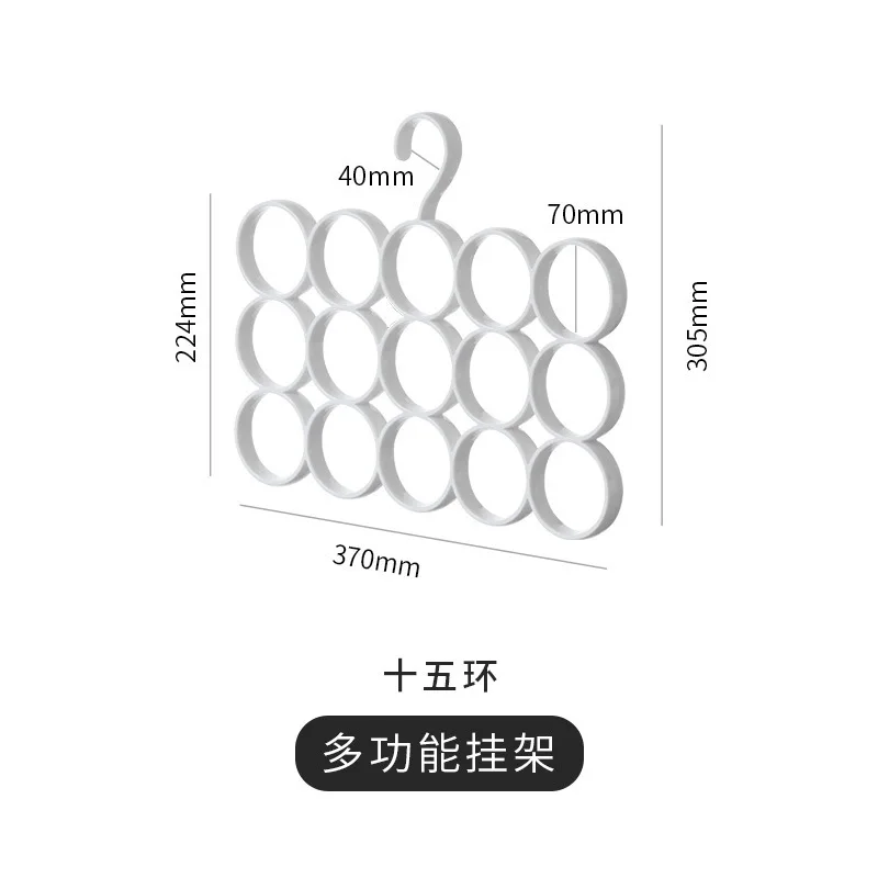 15 Holed Rings Plastic White Multifunction Hanging Rack High Non-Skid Plastic Scarf Hanger