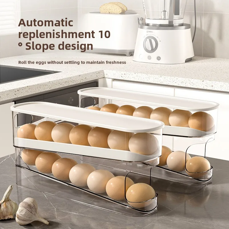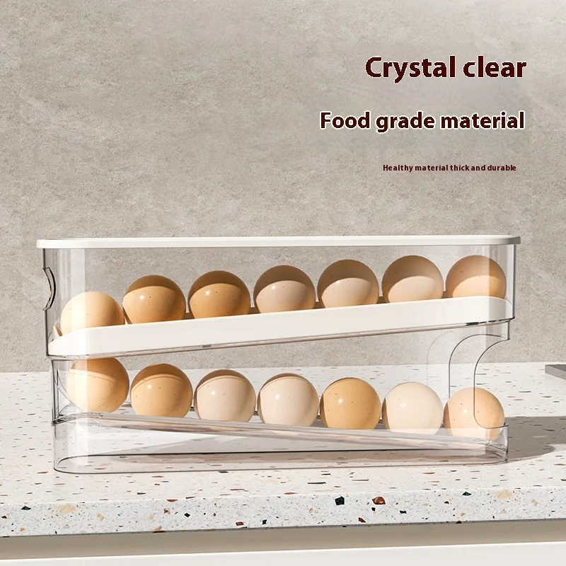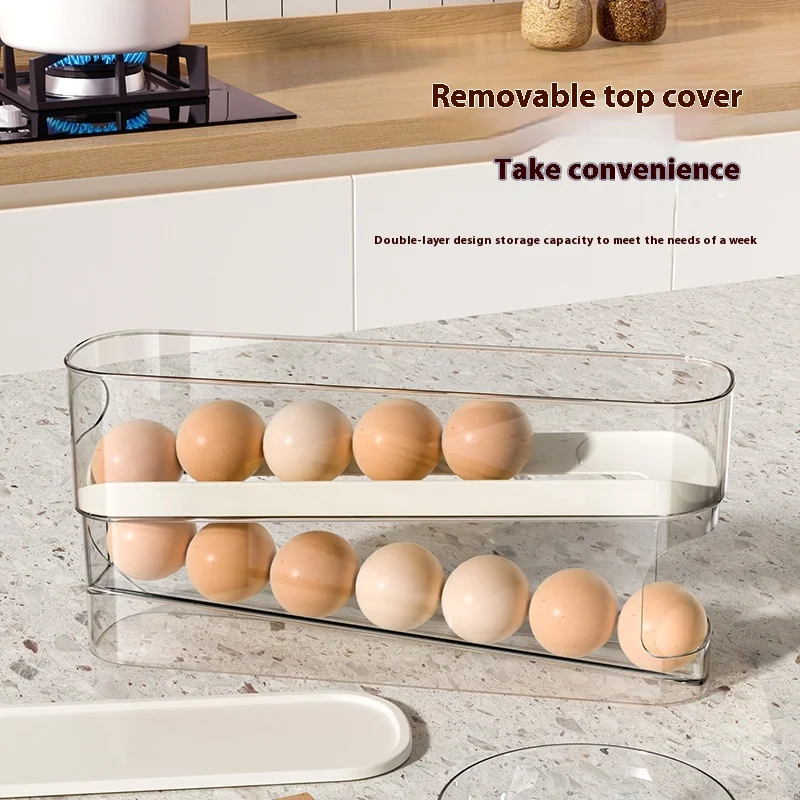 Modern Design Egg Carton Storage Refrigerator Food Grade Rolling Egg Rack Side Door PET PP Storage Box Lid Kitchen Fresh-Keeping