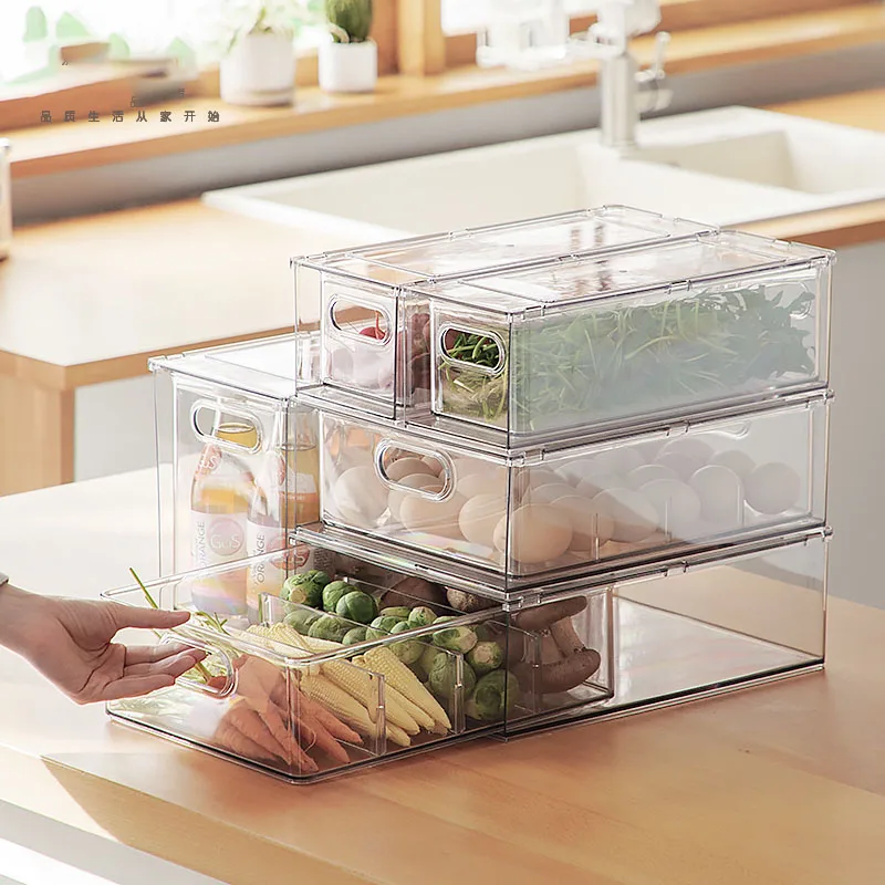 Modern Rectangle Refrigerator Storage Box Transparent Plastic Fruit Crisper Egg Storage Drawer Injection Home Use